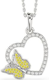 Diamond & Yellow Sapphire Silver Heart Butterfly Necklace