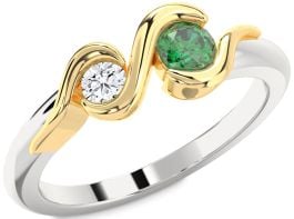 This elegant promise ring features two round-cut stones—one icy blue and the other clear white—cradled in wave-like golden prongs that curve gently around the band. Crafted in polished yellow gold, the flowing design evokes harmony, unity, and lasting devotion. A perfect promise ring to celebrate deep connection, shared dreams, and enduring love with a touch of timeless sophistication.