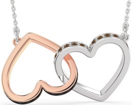 Large Black & Chocolate Brown Diamond Platinum & Rose Gold Heart Interlock Necklace