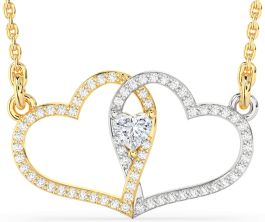 This radiant pendant beautifully intertwines two open hearts, their graceful outlines adorned with a sparkling trail of accents. At the center of their embrace, a heart-shaped focal point shines brightly, symbolizing unity and deep affection. This design captures the essence of togetherness and enduring love, making it a perfect expression of heartfelt connection and timeless elegance.