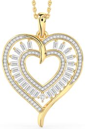 This radiant pendant captivates with its intertwined hearts, framed by brilliant sparkling stones and a stunning arrangement of baguette-cut gems. The elegant design exudes timeless romance and sophistication, perfect for celebrating cherished moments or gifting a symbol of eternal love and devotion. A true statement piece for any jewelry collection.