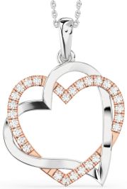 Large Diamond Platinum & Rose Gold Heart Necklace