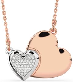 Large Diamond Platinum & Rose Gold Heart Necklace