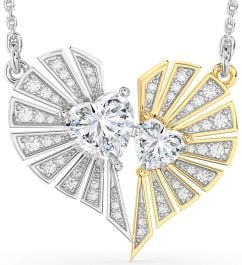 Large Diamond Platinum & Yellow Gold Broken Heart Necklace