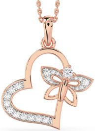 Large Diamond Rose Gold Silver Heart Butterfly Necklace