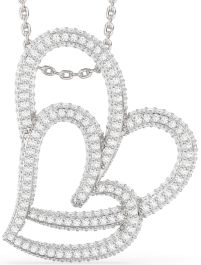 Artfully sculpted, this pendant features a modern heart silhouette composed of graceful loops adorned with shimmering accents. The flowing design exudes sophistication and creativity, creating a piece that’s both eye-catching and deeply expressive. With bold curves and a radiant finish, it captures the essence of love in motion—fluid, luminous, and full of elegance from every angle.