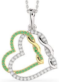 Large Emerald & Diamond Silver & 10K gold Heart Necklace