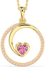 Large Pink Sapphire & Morganite Gold Silver Heart Circle Necklace