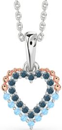 London Blue Topaz & Aquamarine Silver & 10K Rose Gold Heart Necklace