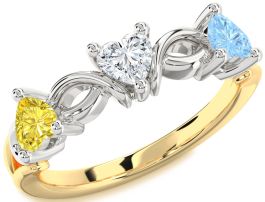 White Yellow Gold Heart Knot Three Stone Mother's Ring
