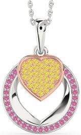 Yellow Diamond & Pink Sapphire Platinum & Rose Gold Heart Circle Necklace