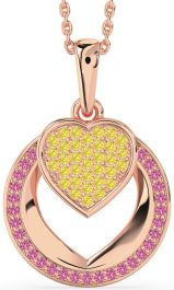 Yellow Diamond & Pink Sapphire Rose Gold Heart Circle Necklace