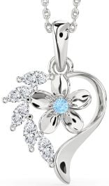 Diamond & Aquamarine White Gold Heart Flower Necklace
