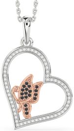 Diamond & Black Onyx White Rose Gold Heart Butterfly Necklace