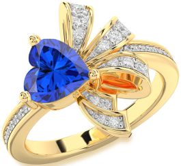 Diamond Blue Sapphire Gold Heart Pave Promise Ring
