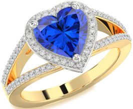 Diamond Blue Sapphire Gold Silver Heart Halo Pave Engagement Ring