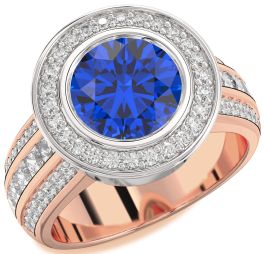 Diamond Blue Sapphire Platinum & Rose Gold Round Halo Pave Engagement Ring