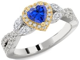 Diamond Blue Sapphire Platinum & Yellow Gold Heart Halo Engagement Ring