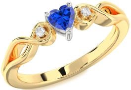 Diamond Blue Sapphire Platinum & Yellow Gold Heart Knot Three Stone Engagement Ring