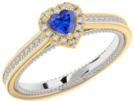 Diamond Blue Sapphire Platinum & Yellow Gold Heart Pave Promise Ring