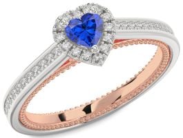 Diamond Blue Sapphire White Rose Gold Heart Pave Promise Ring