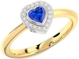 Diamond Blue Sapphire White Yellow Gold Heart Promise Ring