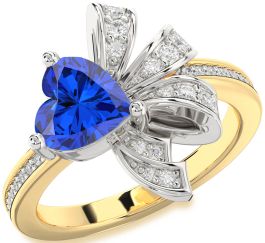 Diamond Blue Sapphire White Yellow Gold Heart Pave Promise Ring