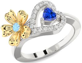 Diamond Gold Silver Flower Heart Two Stone Promise Ring