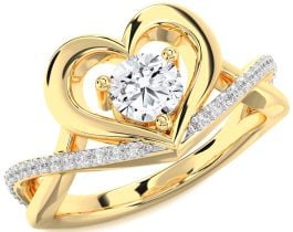 Diamond Gold Silver Heart Solitaire Engagement Ring