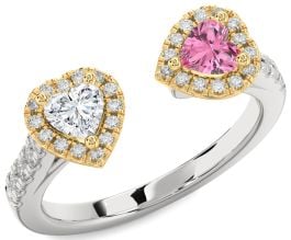 Elevate your love story with this dazzling two-stone heart Promise Ring. Each heart-shaped centerpiece is framed by a radiant halo of pavé-set accents, capturing the essence of romance and sparkle. The graceful open band is further enhanced with shimmering stones that lead toward each heart, symbolizing two lives intertwined. A luminous, meaningful design perfect for celebrating unbreakable bonds.