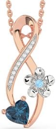 Diamond London Blue Topaz & Aquamarine White Rose Gold Infinity Heart Flower Necklace
