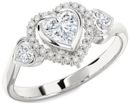 Whimsical and heartfelt, this engagement ring features a brilliant central heart encircled by a halo of sparkling accents, flanked by two vivid hearts in soft pink and blue. Each color represents a unique emotion and chapter in your love story, brought together in perfect harmony. Romantic and radiant, this ring celebrates individuality and the joy of a bond that’s both colorful and complete.