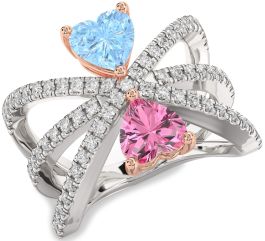 Diamond Platinum & Rose Gold Two Heart Promise Ring