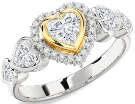 Overflowing with romance, this engagement ring features a central heart embraced by a shimmering halo and flanked by three smaller hearts on each side. Each radiant heart reflects the many facets of love—past, present, and future—united in a design full of warmth and devotion. Bold yet tender, this ring is a symbol of a love story that grows more beautiful with every heartbeat.