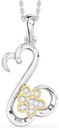 Diamond Platinum & Yellow Gold Heart Paw Necklace
