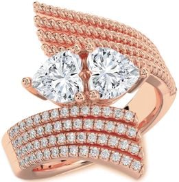 Diamond Rose Gold Silver Two Heart Promise Ring