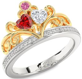 This Mother's ring radiates regal elegance with its crown-like design and trio of meaningful stones, celebrating the bond between a mother and her children. Delicate scrollwork and a shimmering band create a graceful foundation, while the hearts at the top represent love, strength, and the joy of family. A timeless piece crafted to honor a mother’s endless devotion.