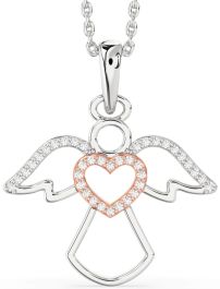Diamond Silver & 10K Rose Gold Angel Heart Necklace
