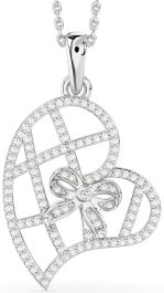 Whimsical and radiant, this pendant features a heart-shaped silhouette wrapped in sparkling lattice lines and tied with a delicate bow. The playful ribbon at the center adds a sweet, gift-like charm to its brilliant framework. A symbol of love wrapped with care and joy, this piece makes a perfect keepsake to celebrate life’s most cherished connections.