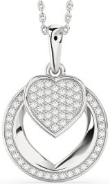 This dazzling pendant combines the timeless symbol of a heart with a modern circular frame, both adorned with shimmering accents that catch the light beautifully. The suspended heart at the center creates a captivating focal point, evoking feelings of love and unity. This design effortlessly blends classic romance with contemporary elegance, making it a perfect statement piece for any occasion.