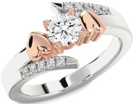 Whimsical and romantic, this engagement ring features a luminous center stone embraced by two polished heart motifs, creating a sweet and symbolic design. Sparkling accents line the split band, adding brilliance and charm to its playful elegance. A celebration of affection and joy, this ring beautifully captures the spirit of love in its most heartfelt and tender form.