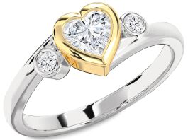 Diamond White Yellow Gold Heart Three Stone Engagement Ring