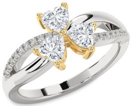Diamond White Yellow Gold Shamrock Heart Three Stone Ring