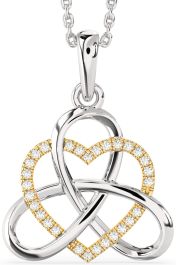 Diamond White Yellow Gold Heart Trinity Knot Necklace
