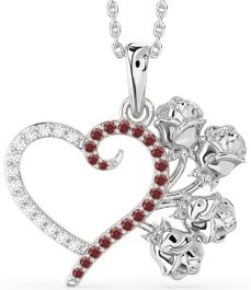 Large Diamond & Garnet White Gold Heart Flower Necklace