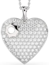 Radiating with modern charm, this heart-shaped pendant features a dazzling surface of shimmering accents, creating a rich texture that captures light from every angle. A distinctive sunburst cutout near the top adds a playful twist to its classic silhouette, lending an artistic edge to its romantic essence. Bold yet elegant, this piece embodies love with luminous, contemporary flair.
