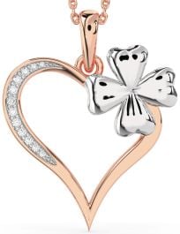 Large Diamond Platinum & Rose Gold Heart Clover Necklace