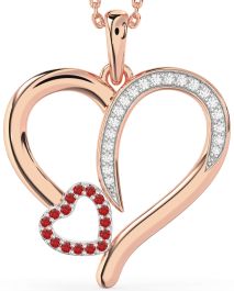Large Diamond & Ruby Platinum & Rose Gold Heart Necklace