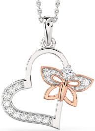 Large Diamond White Rose Gold Heart Butterfly Necklace