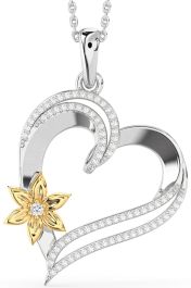 Large Diamond White Yellow Gold Heart Flower Necklace